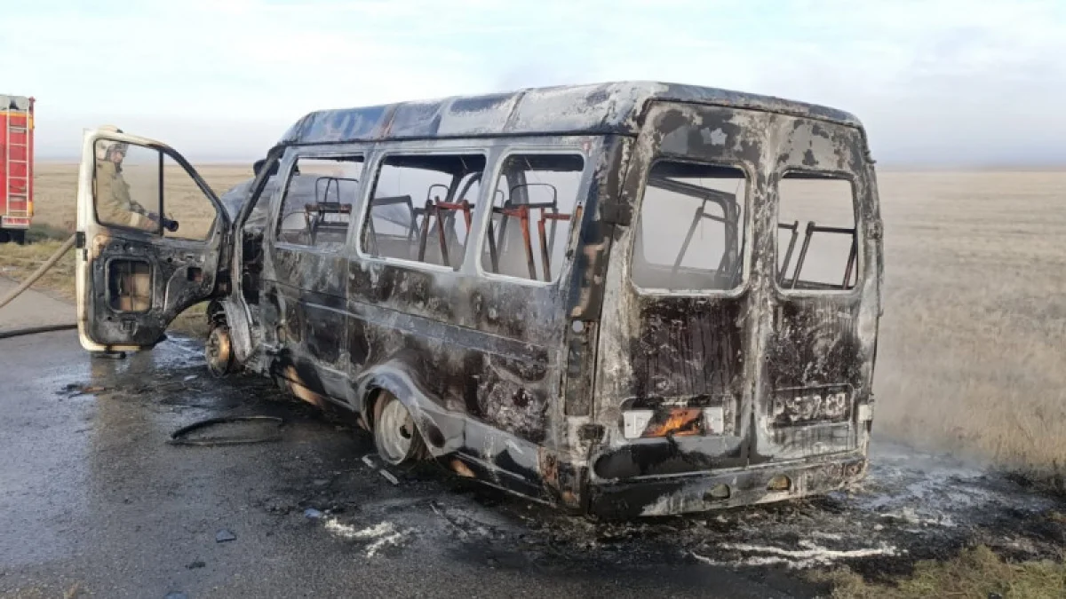 На трассе в Костанайской области загорелась автомашина "Газель", которая везла школьников на соревнования, передает корреспондент Tengrinews.kz.