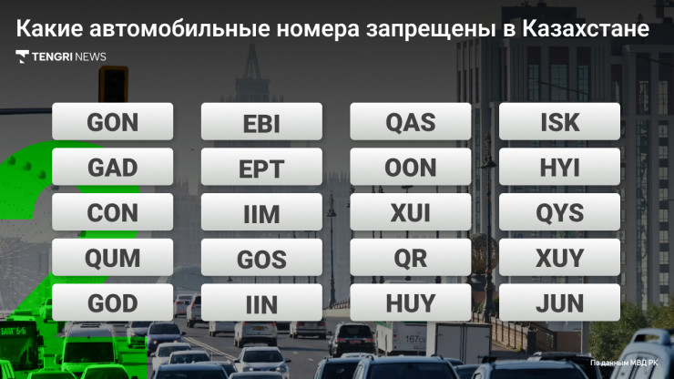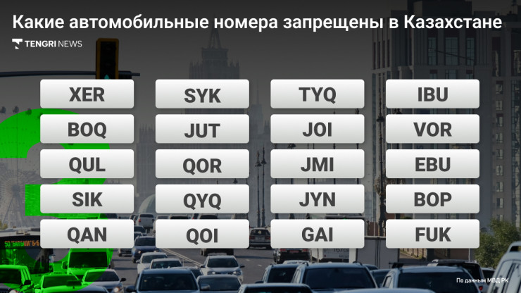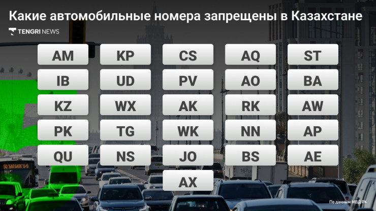 В Министерстве внутренних дел Казахстана перечислили серии государственных регистрационных знаков транспортных средств, которые были исключены, поскольку их чтение и произношение "чуждо культуре речи", передает корреспондент Tengrinews.kz.