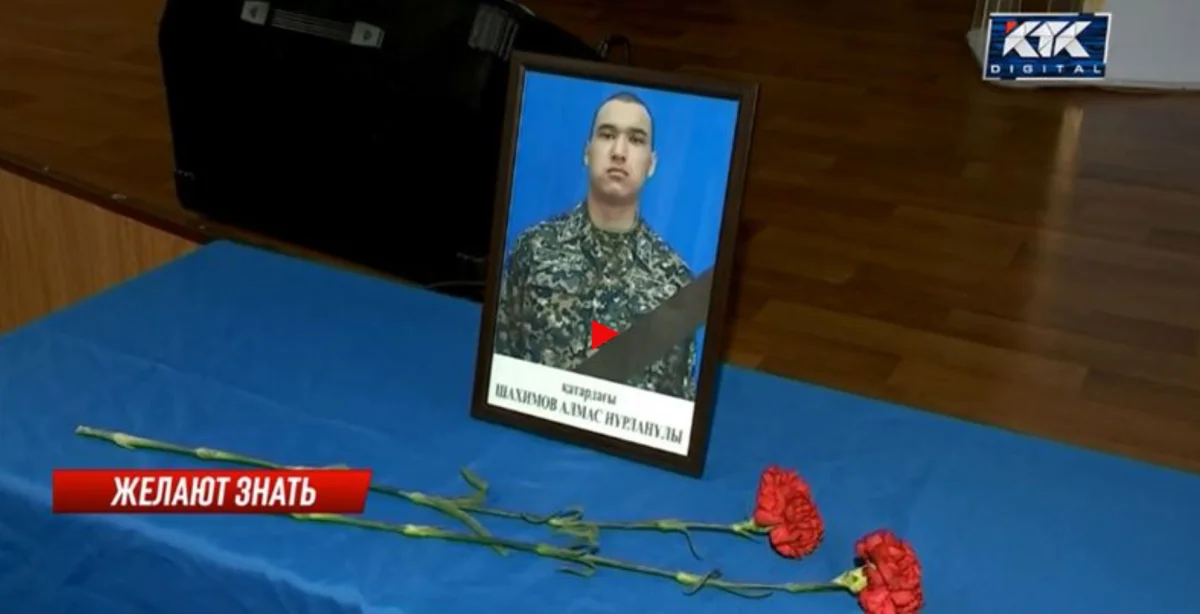 В Кокшетау эксгумировали тело солдата, который погиб во время песчаной бури на алматинском полигоне. Родные 19-летнего Алмаса Шахимова добивались этого больше года. Они уверены: парень погиб не от тяжелой балки, упавшей на голову, а от рук сослуживца.