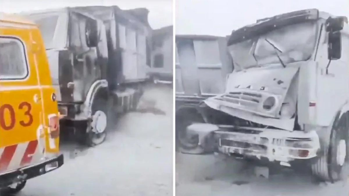 ДТП произошло 26 декабря на 255-м км трассы в направлении Астаны, неподалёку от платного терминала. Тридцатиоднолетний водитель, управляя КамАЗом с прицепом, не учёл дорожно-метеорологические условия и столкнулся с ехавшей впереди Toyota Camry. Грузовик на скользком асфальте понесло, и он протаранил ещё три грузовика и три легковых авто, в том числе уазик скорой помощи.