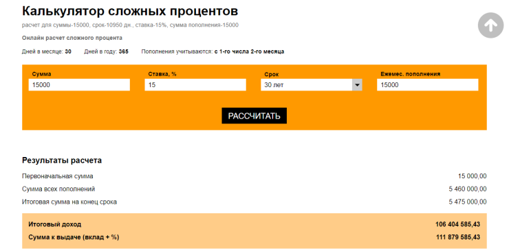 Если вы положили на депозит 15 тысяч тенге под 15 процентов годовых, то через 20 лет эта сумма может превратиться в 300 тысяч, а через 30 лет - в 1,3 миллиона. И это если вы не будете к вложенной сумме ничего докладывать.