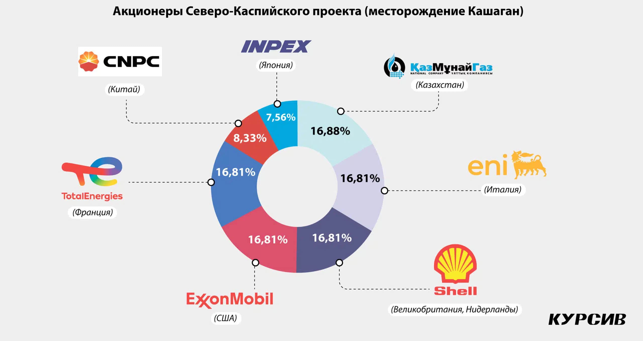 «В нефти много сероводорода. Каспий мелеет – пришлось проводить дноуглубительные работы и купить судно на воздушной подушке. Оно производит большой шум, из-за чего, как говорят экоактивисты, происходит глушение рыбы – она гибнет. Там постоянно новые вызовы возникают, – говорит Жумагулов. – Акционеры вроде хотят вкладываться в проект, но и хотят гарантий, продления контракта. Однако Казахстан говорит: сделайте то, что обещали, а к 2041 году сядем и поговорим».