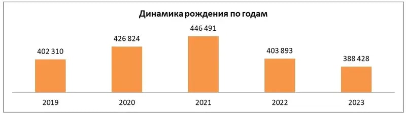 Казахстан продолжает удивлять своей высокой рождаемостью. Только в 2023 году в стране появилось на свет больше 388 тысяч детей. Общий коэффициент рождаемости в 2023 году составил 19,52 новорожденных на 1000 человек. Это снижение по сравнению с 2022 годом (20,57), но все же это очень много. Сравните: коэффициент рождаемости в России - 8,9 на 1000 человек; в Италии – 6,2; в Южной Корее и Гонконге - менее 6 человек на 100 человек. При этом самые высокие уровни рождаемости наблюдаются в странах Африки. В Нигере – 47,5 младенцев на 1000 человек; в Уганде – 42,7; в Анголе – 42,3.