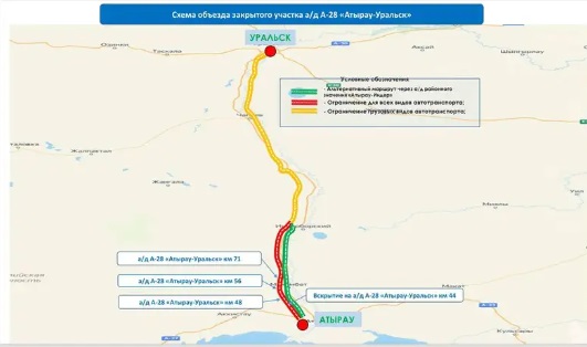19 мая в Атырауской области введено ограничение движения на нескольких участках автодороги, сообщает Zakon.kz.