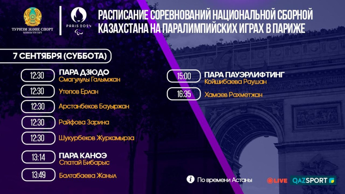 Опубликовано расписание соревнований с участием казахстанских паралимпийцев 7 сентября, передаёт BaigeNews.kz.