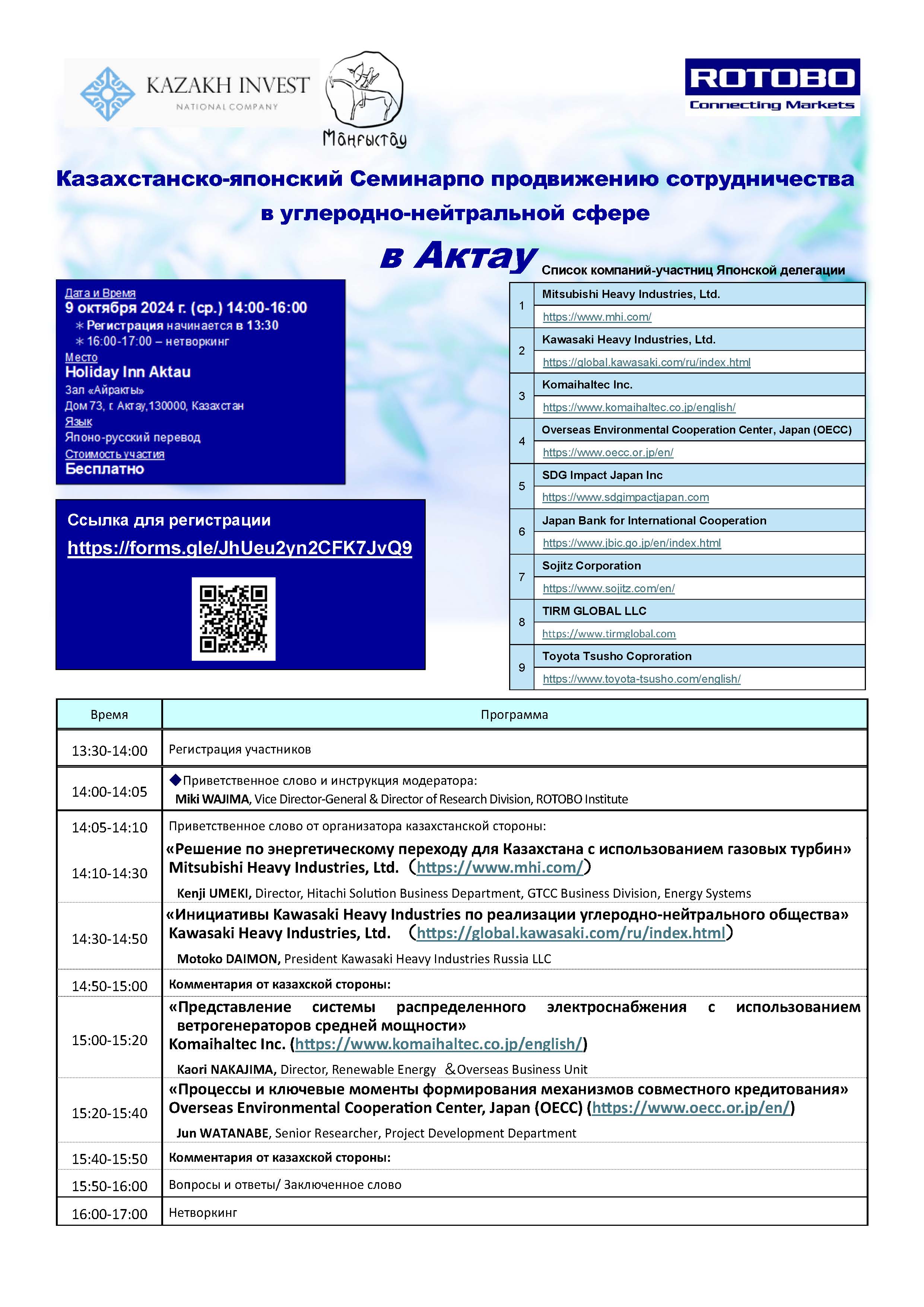 Также подробная программа мероприятия доступна на официальном сайте ассоциации РОТОБО: https://www.rotobo.or.jp/info/others/20241009aktau.pdf
