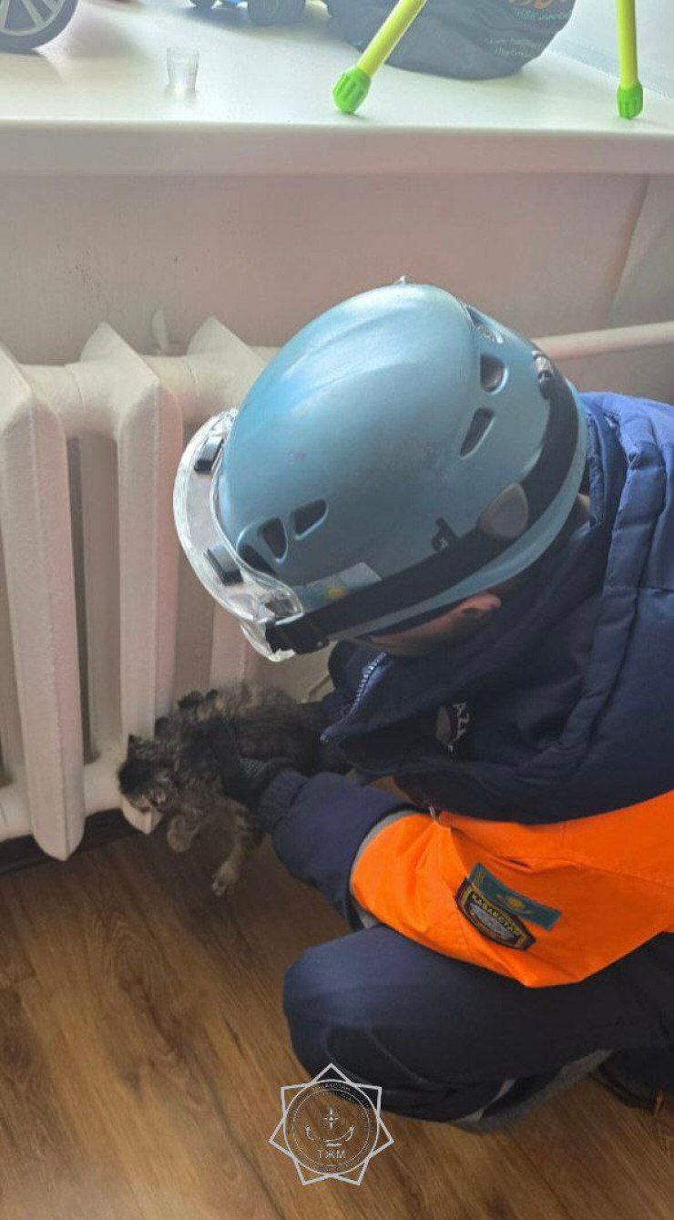 Спасение пушистого было проведено в одной из квартир жилого дома, расположенного по проспекту Б.Момышулы. Сообщается, что игривый котенок застрял головой между стеной и батареей отопления. Отчаявшаяся хозяйка питомца вызвала спасателей.
