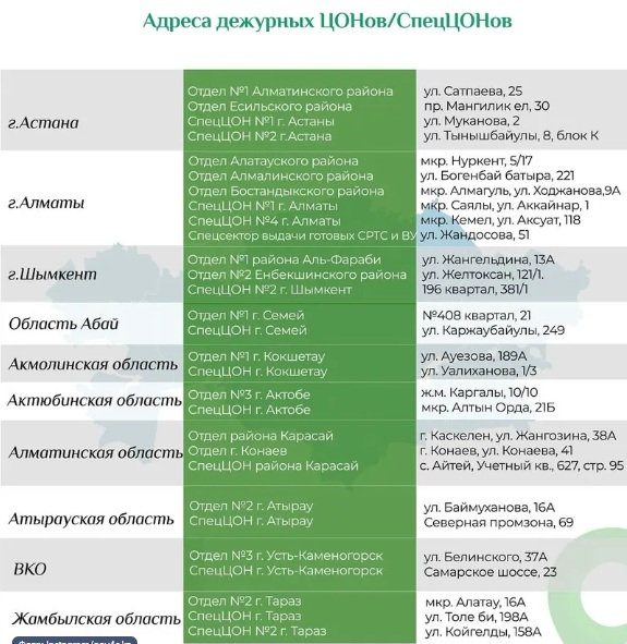 Значимой новостью является, что с 1 марта в Алматы, Шымкент, Актобе и Алматинской области, а с 3 марта в Астане изменятся адреса дежурных ЦОНов и спецЦОНов.