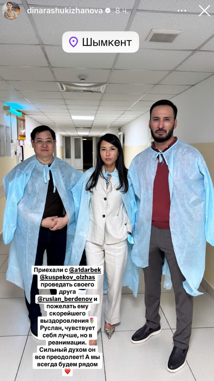 Руслан Берденов, занимающий должность заместителя акима города Шымкента, продолжает находиться в отделении реанимации после вооруженного нападения. Об этом сообщила бывший депутат мажилиса от партии Respublica Динара Шукижанова в своём Instagram-аккаунте.