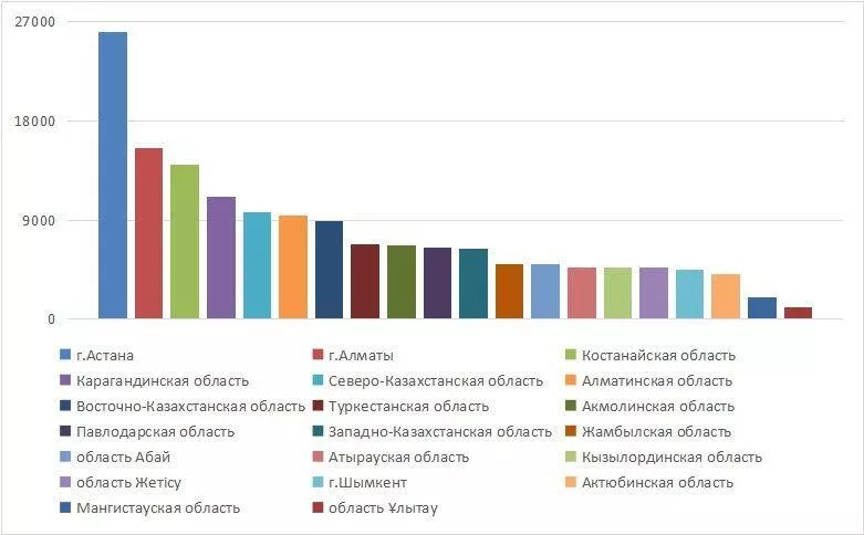 Отдельное внимание в отчёте уделено обращениям граждан в местные исполнительные органы. Согласно графику, чаще всего с запросами обращались жители столицы – Астаны. Наименьшее количество запросов было зафиксировано от жителей Улытауской области.