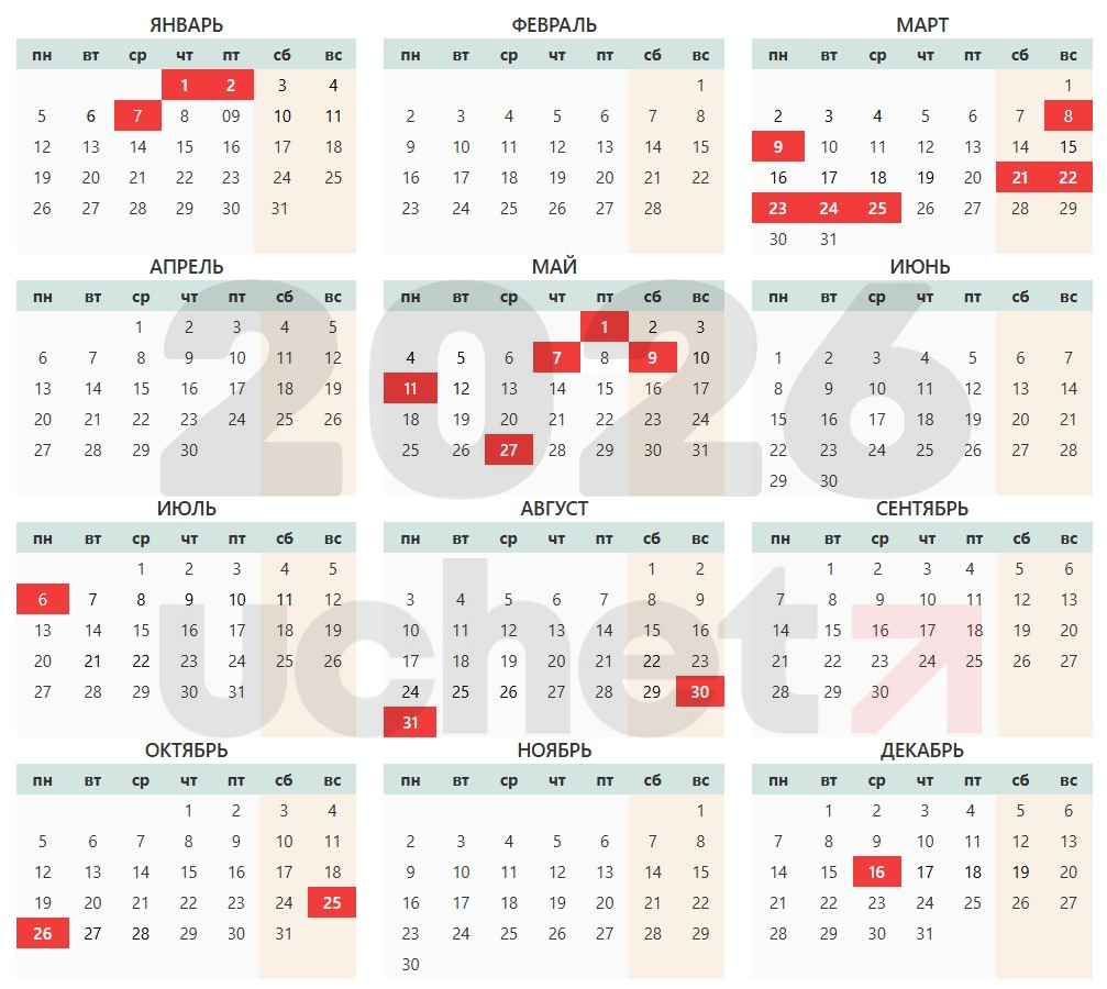 В 2026 году многие праздники выпадают на выходные, что приведет к переносу выходных на будние дни. Ниже приведены официальные праздничные даты: