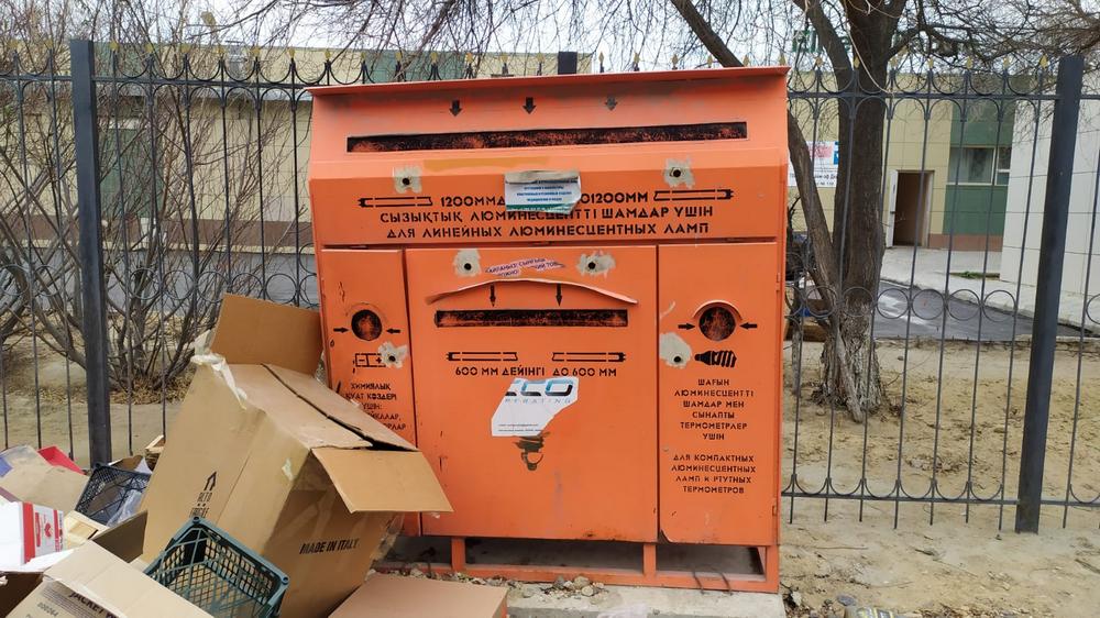 Большинство мусорных баков в Актау старые и обшарпанные. Новые - редкость.