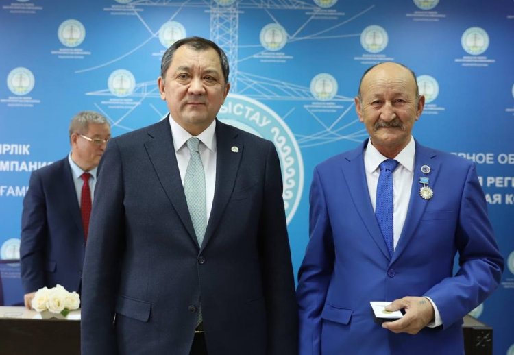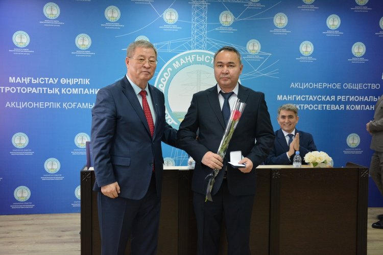 За добросовестное отношение к работе, своевременное и качественное выполнение должностных обязанностей, за стремление к развитию и профессиональному росту аким региона вручил нагрудный знак «Заслуженный энергетик» главному инженеру Жетыбайского РЭС Мирзагулу Адаевичу Инжибаеву.