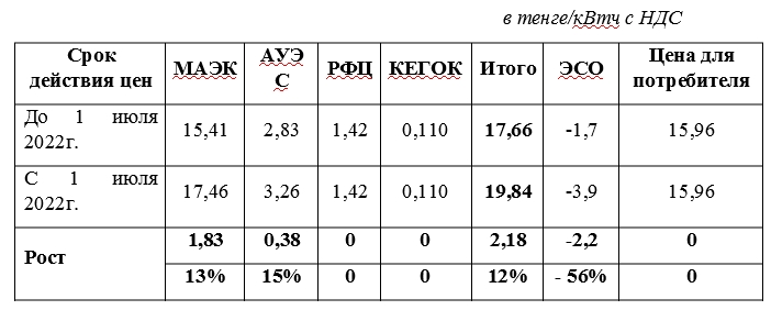 Отмечается, что в связи с введенным Главой государства мораторием на повышение тарифов (180 дней), ТОО «Маңғыстау Жарық» не подавало заявку в ДКРЕМ региона на изменение тарифа для потребителей города Актау и Мунайлинского района до 1 августа 2022 г.