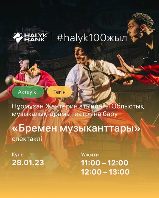 Halyk Bank өзінің 100 жылдығына орай "100 қайырымды іс" жобасы аясында Сіздерге жағымды әрі есте қаларлық шараларды сыйға тартуды жалғастыруда.
