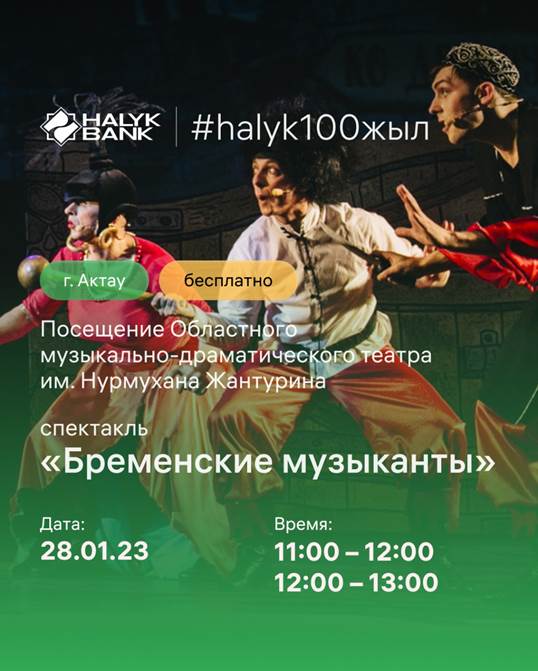 Halyk Bank в честь своего 100-летия продолжает дарить вам приятные и запоминающиеся мероприятия в рамках проекта «100 добрых дел».