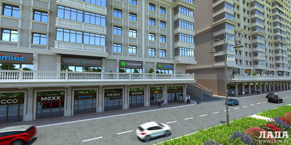 В 5 минутах ходьбы, через дорогу от жилого комплекса, расположен ТРК «Актау», рестораны The Bridge, Napoli, аптеки, спортивный комплекс «Жас Канат», стадион «Мунайшы», частные детские сады, мечеть и банкоматы.