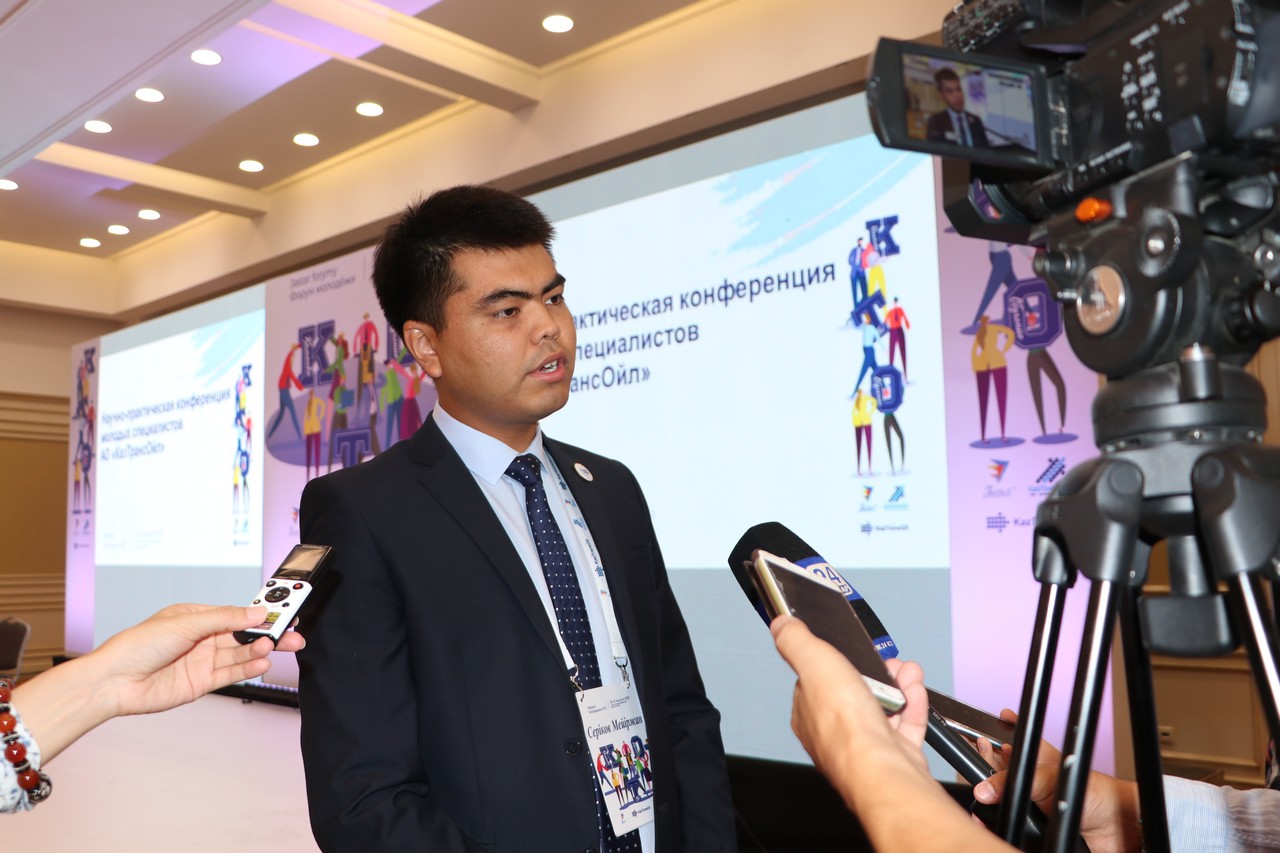 Председатель Совета молодых специалистов АО «КазТрансОйл», ведущий инженер департамента эксплуатации Данияр Смагулов также поделился своим видением, рассказал о деятельности, достижениях и планах Совета, который был создан в 2016 году.