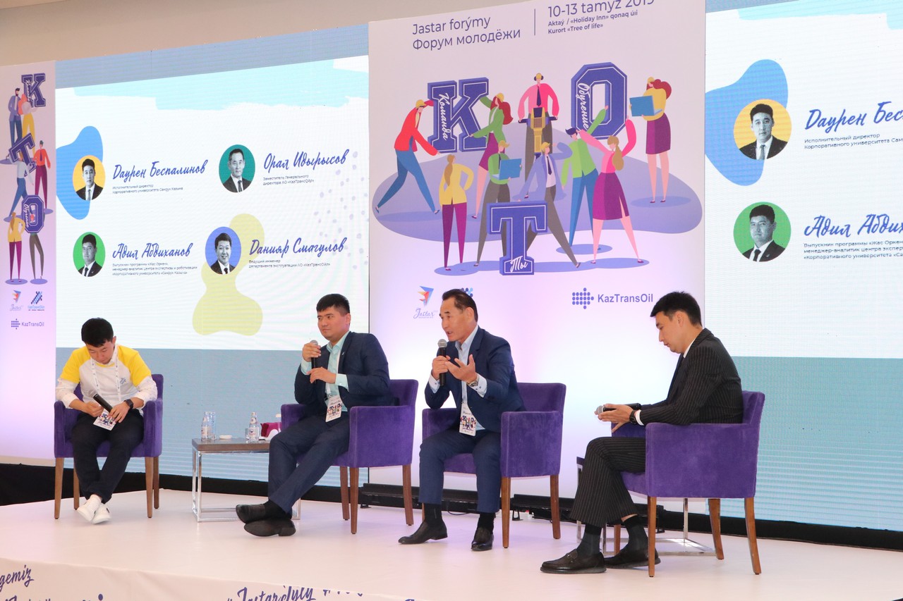 Экспертным мнением с молодыми специалистами поделились заместитель генерального директора АО «КазТрансОйл» Орал Идырысов, исполнительный директор Корпоративного университета «Самрук-Казына» Даурен Беспалинов, выпускник программы «Жас Өркен», менеджер-аналитик центра экспертизы и роботизации Корпоративного университета «Самрук-Казына» Адил Абдиханов.