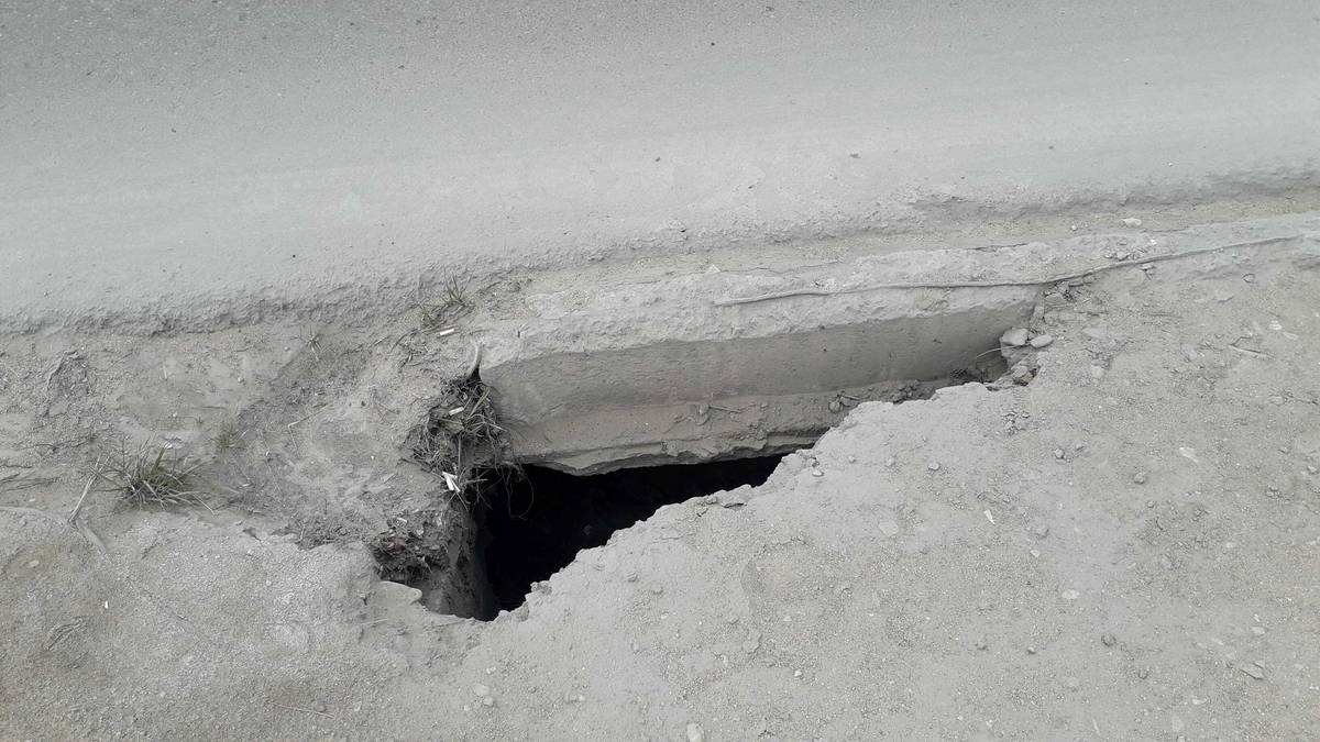 Промыло грунт под дорожным полотном со стороны подстанции 110кВ напротив Ботанического сада. Необходимо срочно принять меры!