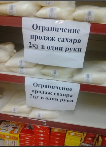 Не знаю, почему об этом стали говорить только сейчас, но сахар весовой уже давно продают "по 2 кг в руки" по крайней мере в Данах. и давно он нерегулярно на прилавках. одно время на него даже упала цена в дане до 285 тг за кг (а в других магазинах лежал по 500-600). на кассе их действительно пробивали по 2 кг за раз, но брать можно было и больше.