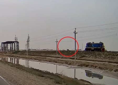 Теперь в Актау лошади угрожают безопасности движения не только на автомобильных дорогах, но и на железнодорожных путях. Лошадь упрямо бежит перед тепловозом и не уходит в сторону, движение из морпорта (на видео справой стороны).