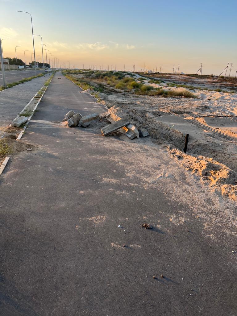 База отдыха «Намыс» на теплом пляже проводила себе электричество. В том месте где устанавливали столбы повредили велодорожку и бордюры. Все бросили вот в таком виде. Кто должен восстанавливать? У нищих слуг нет, так что прошу акимат обратить внимание на порчу имущества, состоящего на балансе города, и заставить собственников базы отдыха «Намыс» восстановить велодорожку в прежнем виде.