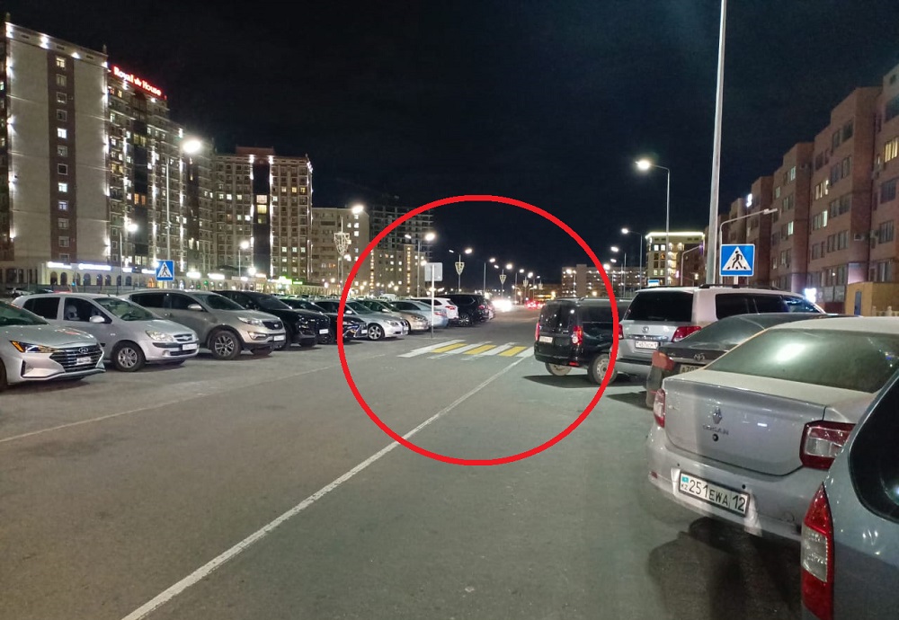 Это пешеходный переход и остановка между 16 и 19 микрорайонами, днём и ночью стоят машины. Не возможно сесть в автобус и затруняет переход через дорогу, прошу опубликовать. Проверяите, публикуйте, пусть акимат исправит!