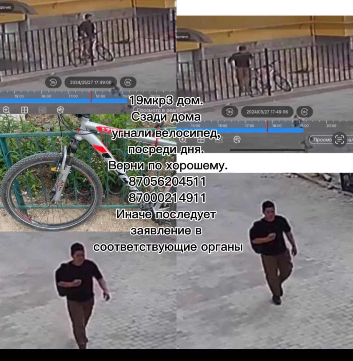У дома угнали велосипед посреди дня. Верни по-хорошему, иначе последует заявление в соответствующие органы.