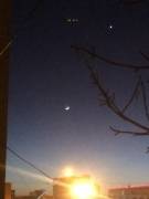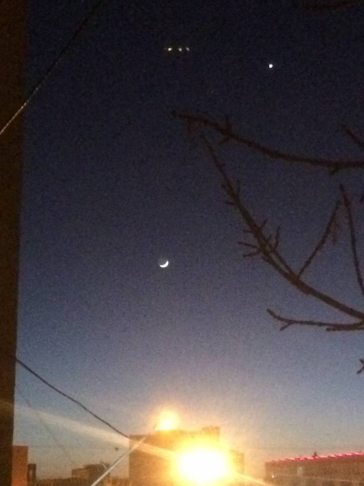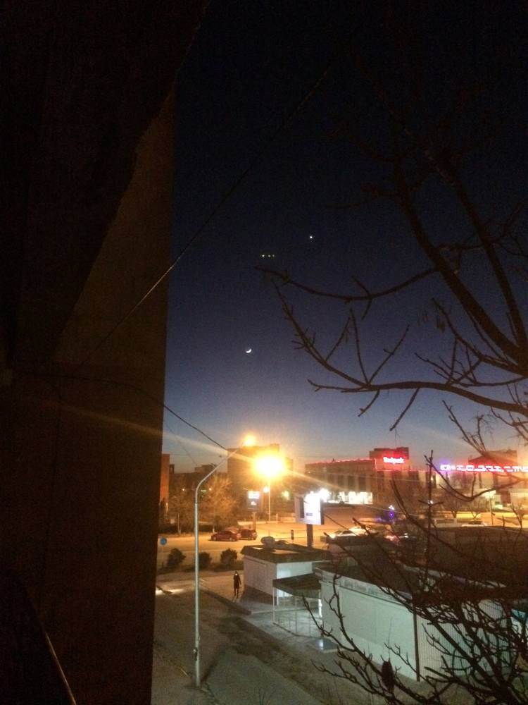 Фото сделано вчера в 8 вечера во втором мкр. Напротив меня нету никакого стекла, что может что-либо отражать. Пыталась сфоткать луну и звезду. Интересно, что за объект находится между ними? На небе этого объекта во время съемки не было видно. На втором фото видно, что объект находится выше звезды.