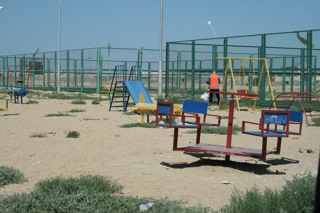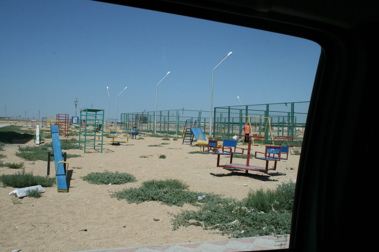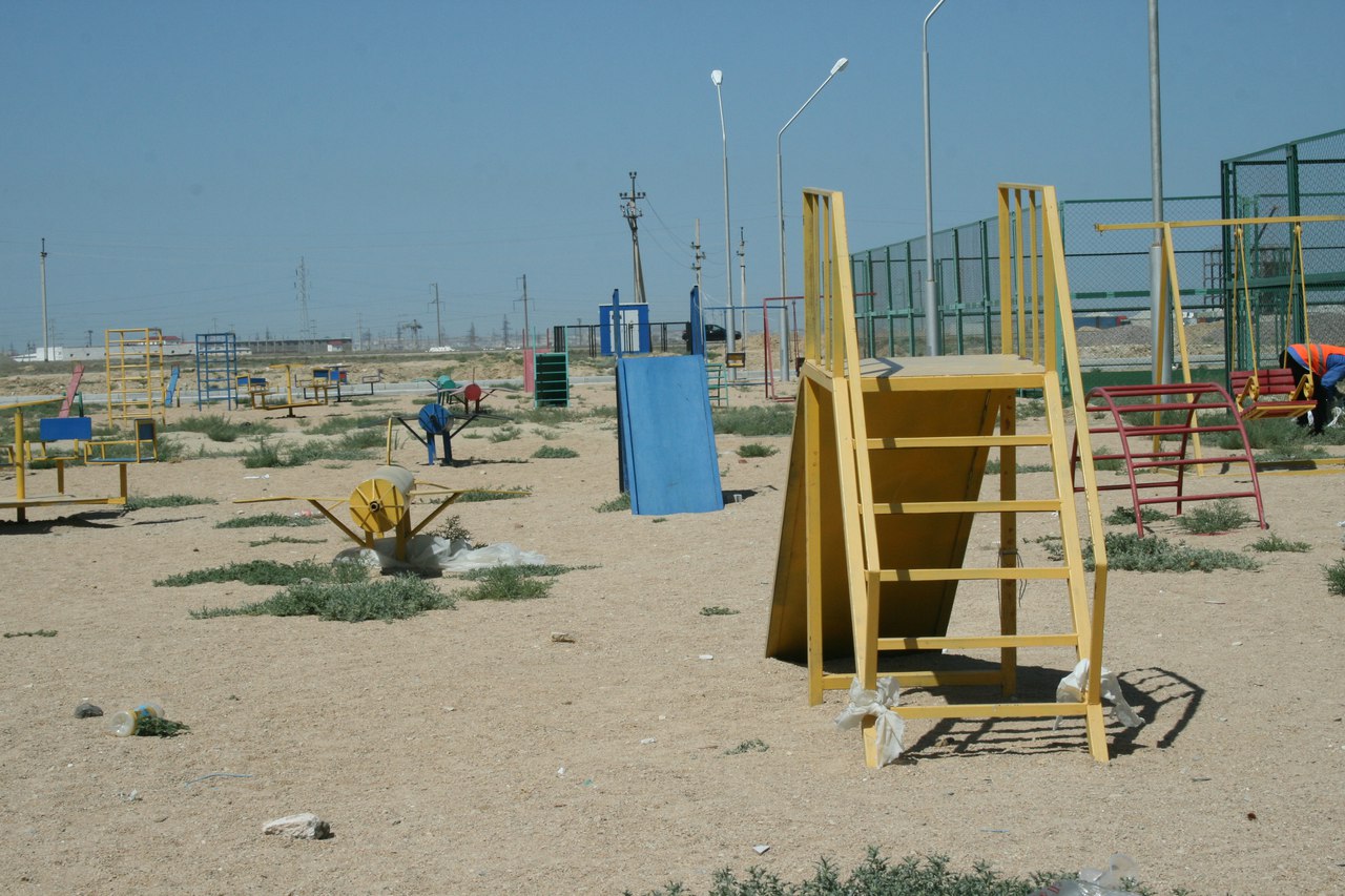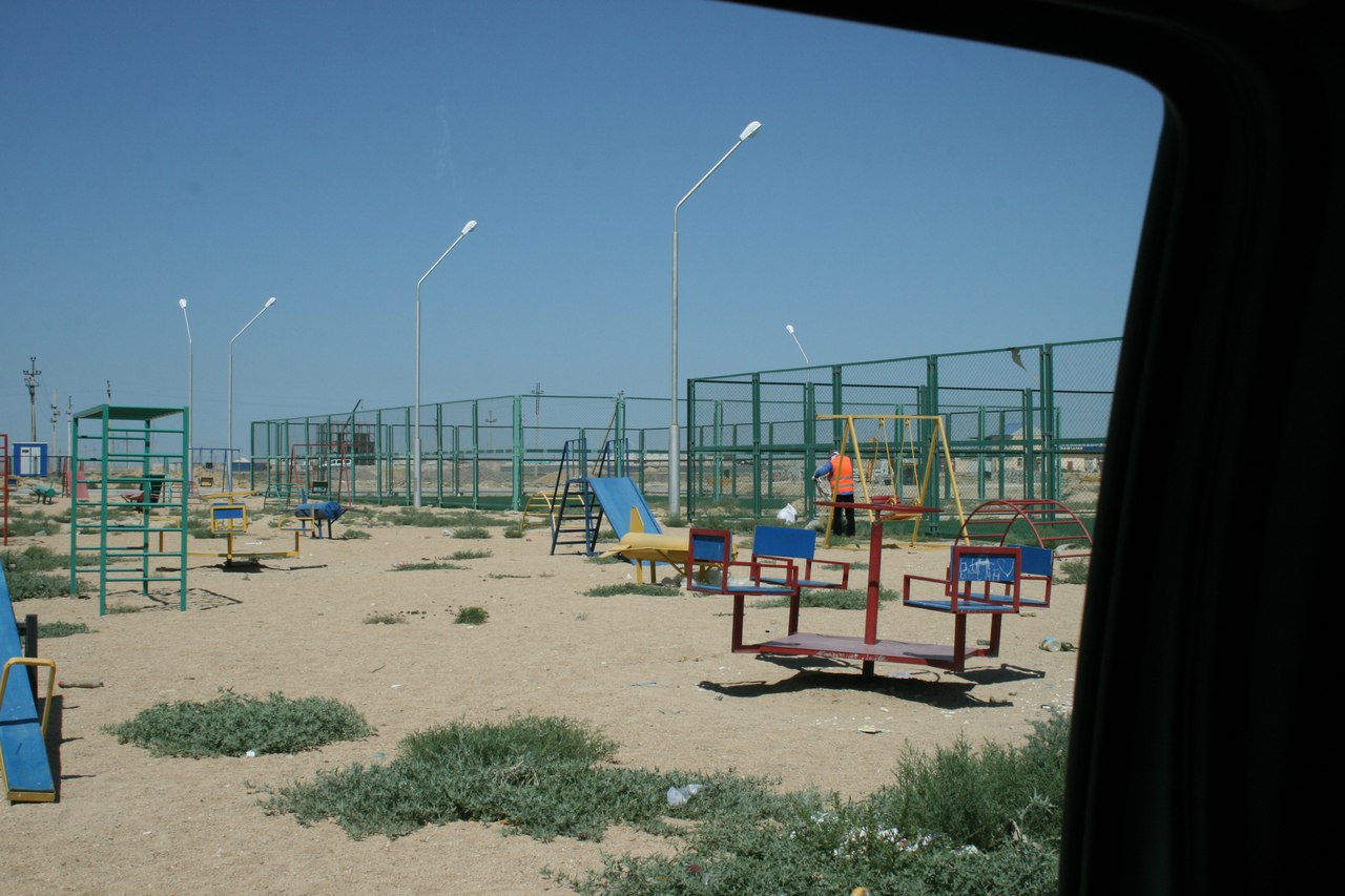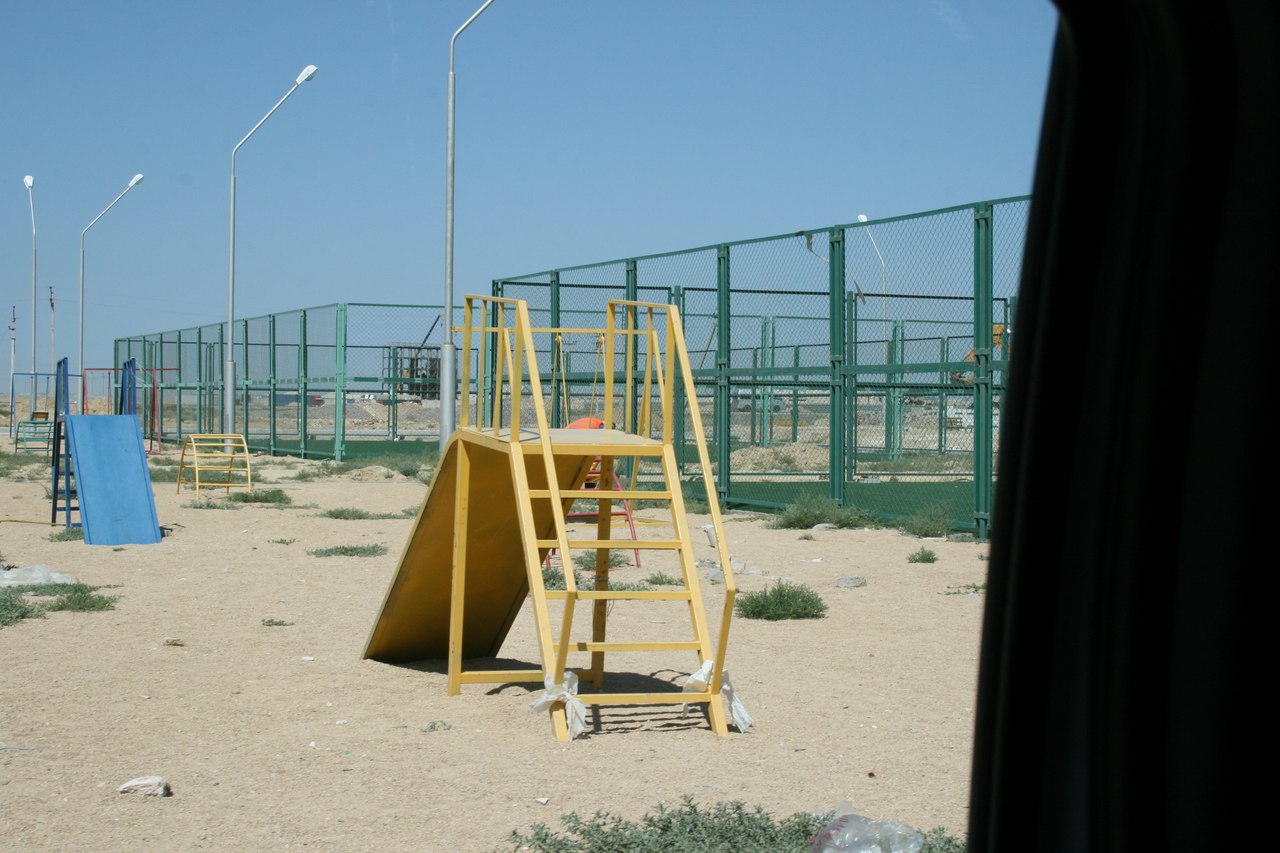 Сегодня проезжал мимо нового жилого комплекса в Мунайлинском рай-не станция Мангышлак,который не так давно был построен. Жилой комплекс в эксплуатацию еще не введен. Но увиденное меня поразило. На против жилого комплекса построена детская площадка, причем как видно на фото не для обычных детей, а судя по всему для спартанцев. Вы хоть раз в детстве катались по окрашенной горке? Катались на квадратных каруселях наспех приваренных из профиля? Нет? А вот дети нового жилого дома будут. Горка с прямым углом,без прогиба. Видимо чтобы ребенок в землю втыкался как гвоздь. Так еще и поверхность окрашенная и шершавая. Чтобы ребенок попу и ноги в кровь стер. Я уже молчу о чуде инженерной мысли самолетик или ракета,я так и не понял что это. В общем ужас. Вот такие вот детские площадки нам предлагают. Хочу что бы Аким этого района лично полюбовался этим творчеством, и желательно привел туда своих детей поиграть.
