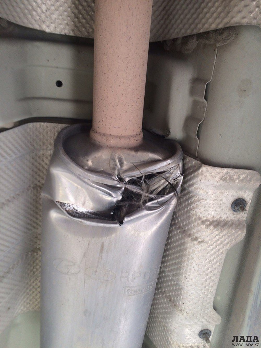 Когда я проехал над ним, одно из креплений металлического листа (не по стандарту), которым было закрыто отверстие, зацепил дно машины и выхлопную трубу - порвал её.