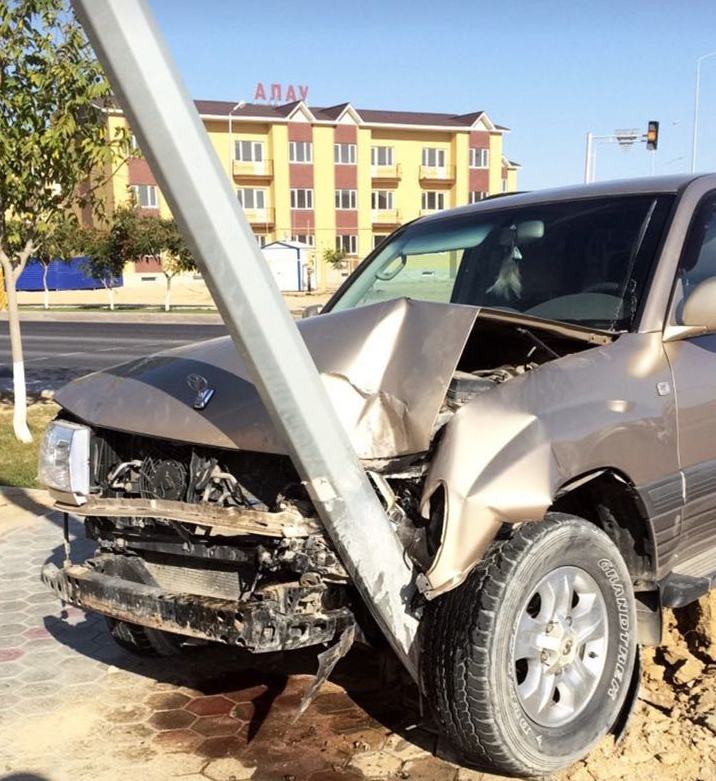 Сегодня в микрорайоне Шыгыс водитель Toyota снес столб.