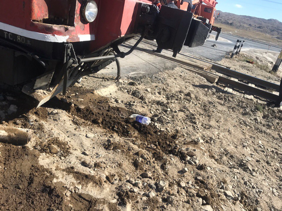 Камаз уже убрали. Просто камазист думал проскочить перед дрезиной. Пришлось многим объезжать этот переезд