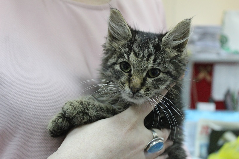 Полуторомесячный котенок, выброшенный в непогоду на улицу, ищет хозяина! Из него вырастет прелестный котик — пушистый и игривый. Котенок очень общительный и ласковый. Возьмите его, он бездомный!