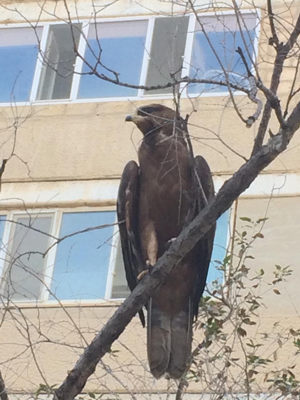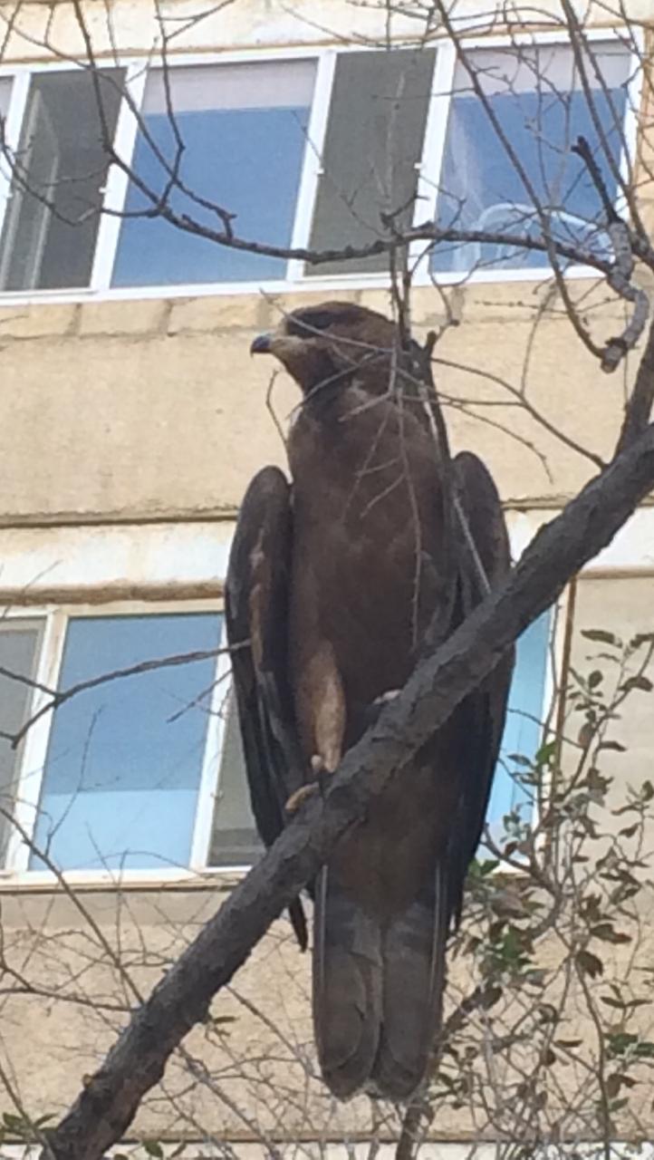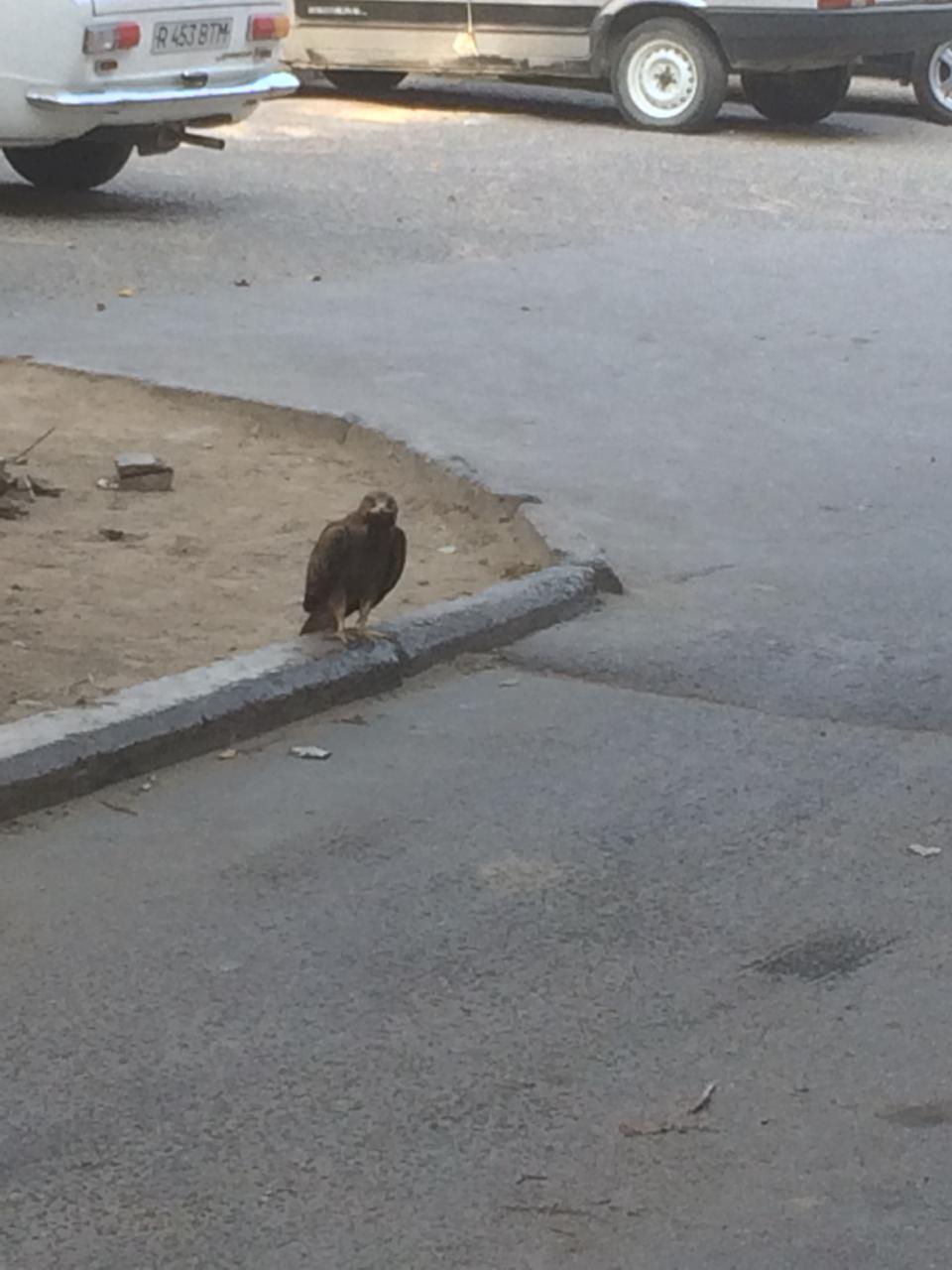 я просто не знаю кому обратиться что бы забрали птицу и отпустили в степи, не понятно почему она в городе, может ранена, почти не летает, сидит на дереве, дети ее гоняют камнями.