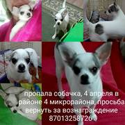 Пропала собачка 4 апреля в районе 4 мкр, просьба всем кто видел или может знает о ее местонахождении позвонить по тел: 87013258726. Вознаграждение гарантируется!