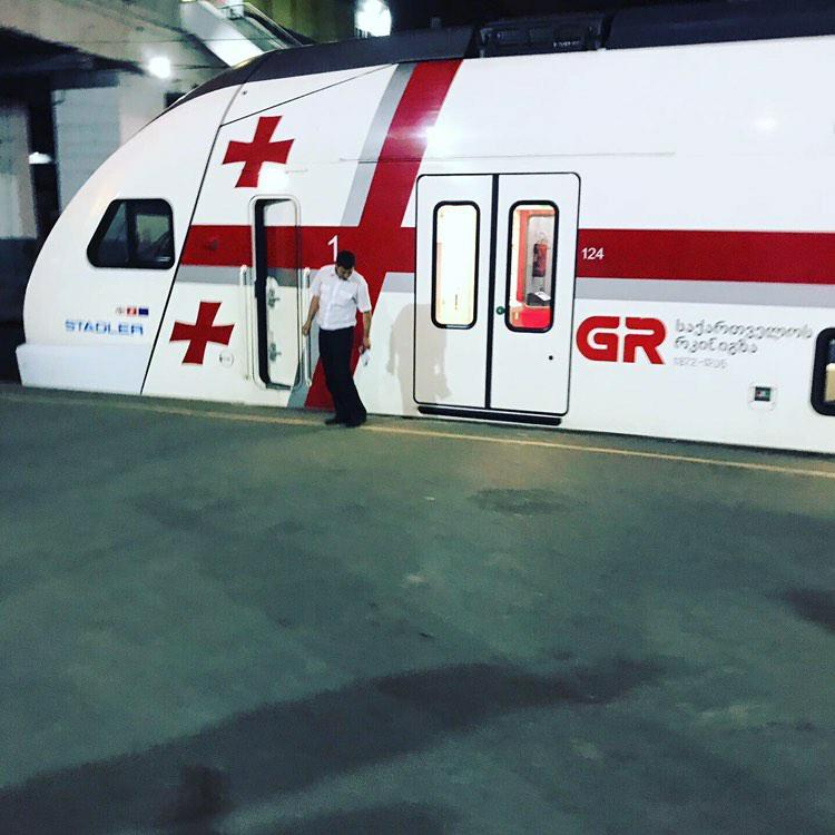 Здравствуйте, это скоростные поезда Грузии, это 21 век, есть бесплатный Wi-Fi, зарядки для телефонов, комфортабельные кресла и чистые современные туалеты. Все для людей сделано.