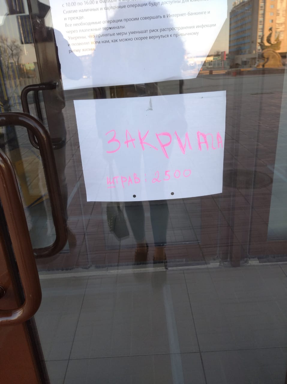 Неграмотные, во всех смыслах.... Судя по отражению в стекле двери, это НурБанк, что в здании городского Акимата (4 мкрн.)