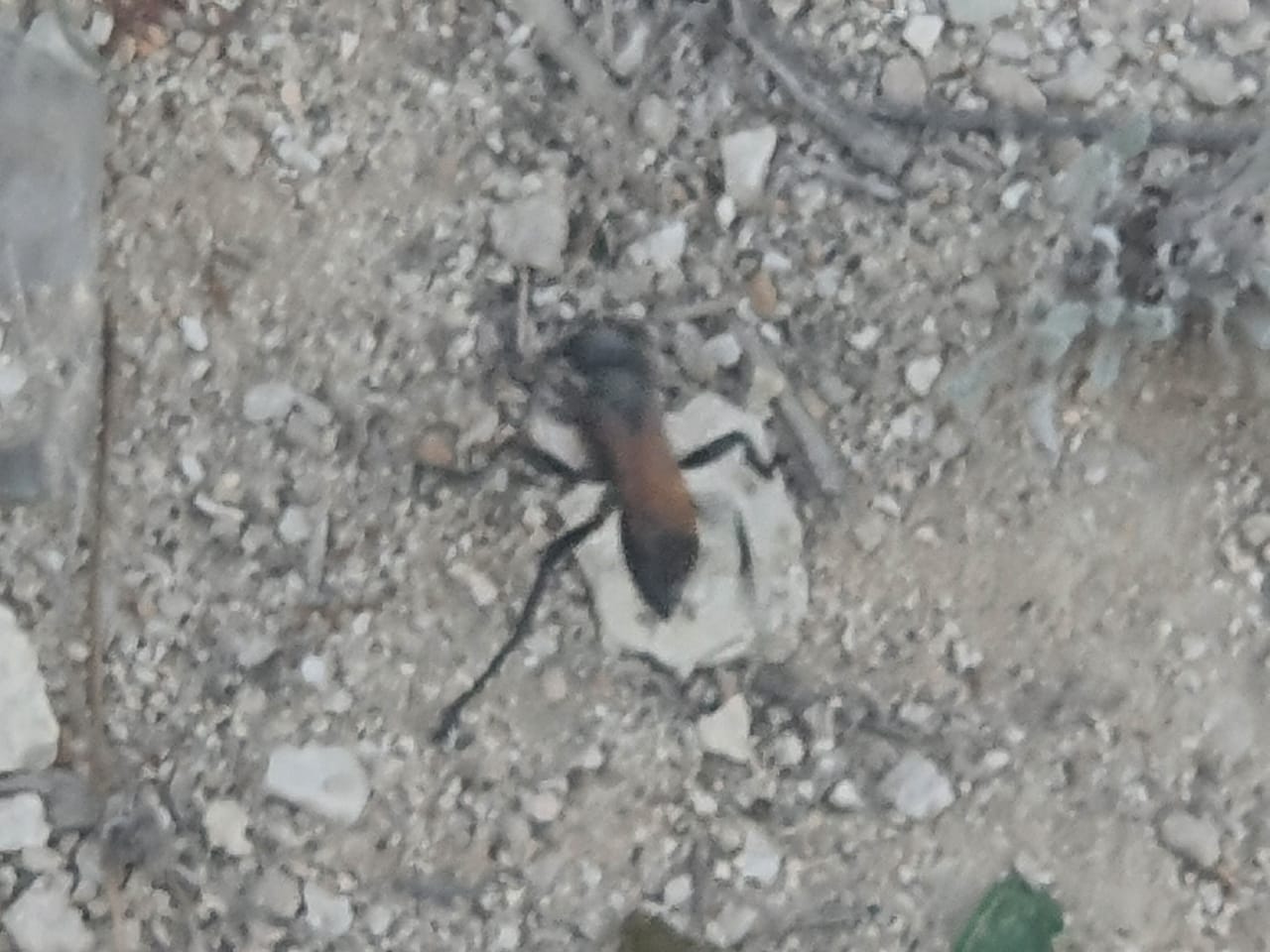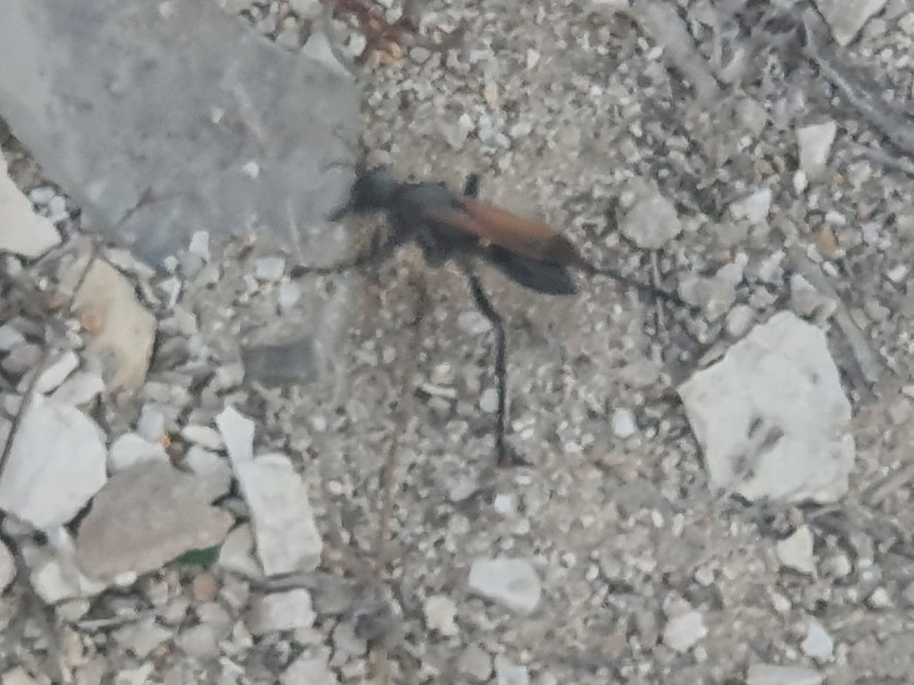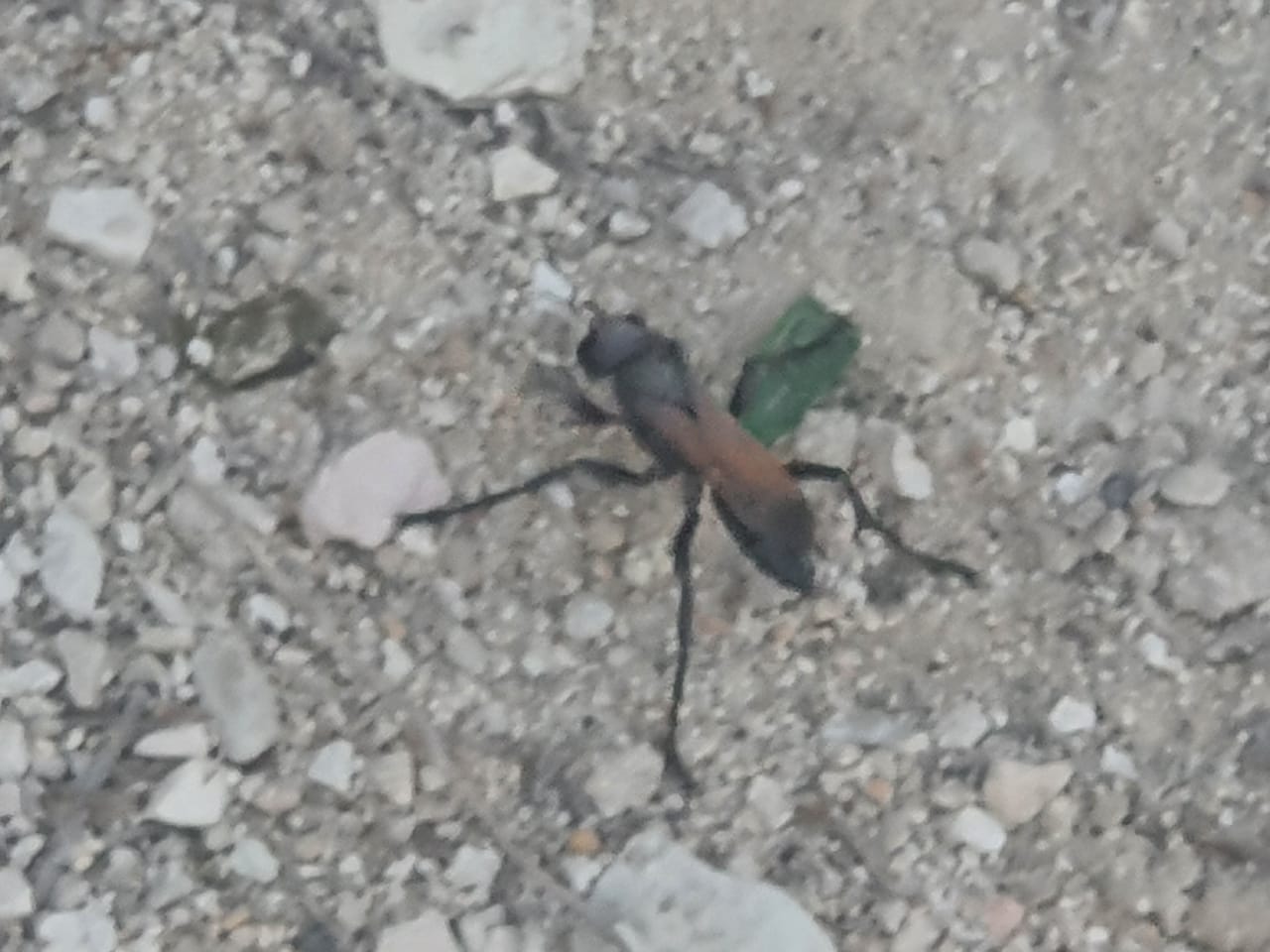 Один из наездников. Парализует жертву тарантула, саранчу и т.п. оставляя её живой, откладывает в нутро яйца, потом закапывает, тем самым обеспечивая своё потомство сравнительно свежей пищей. Весной из под земли выползает молодёжь...