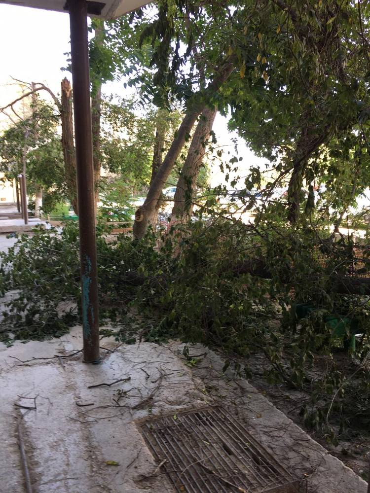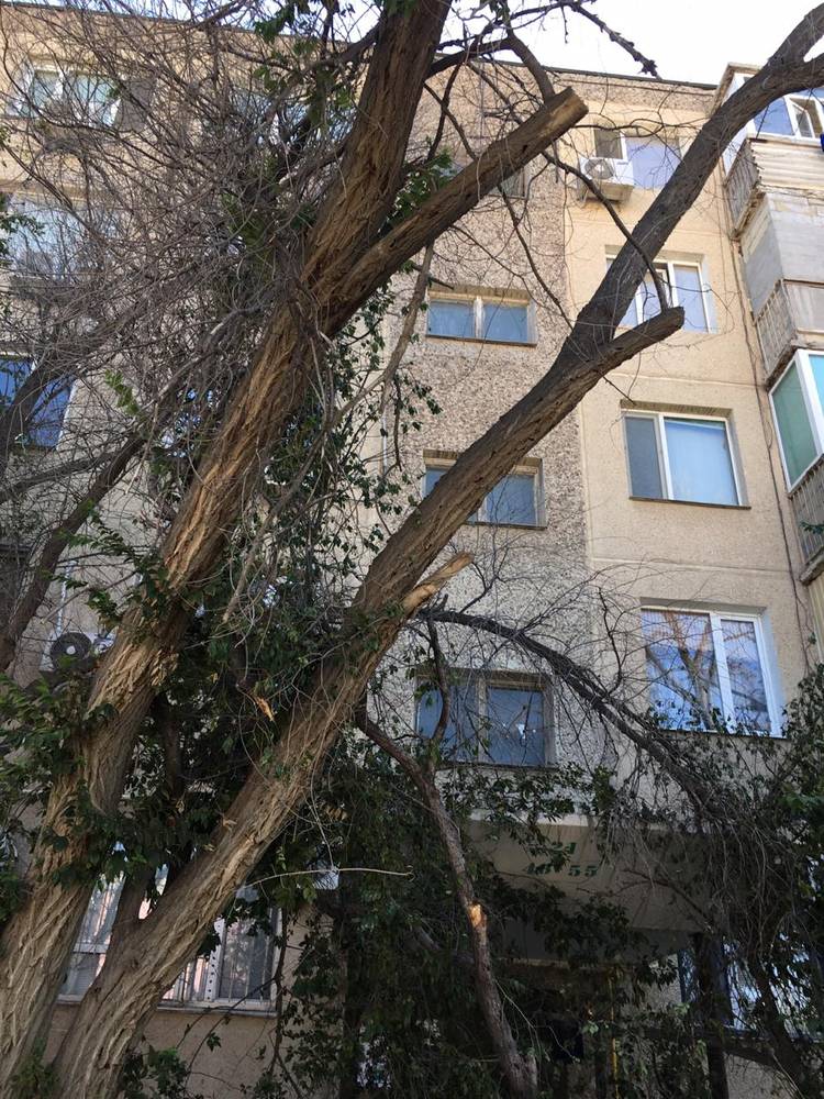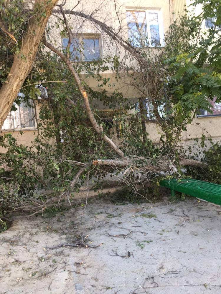8-21, 5-й подъезд, вчера упало дерево, по неизвестным причинам. Скорее всего из-за сухостоя, так как полива деревьев в Актау как не было так и нет.. Дерево чуть не упало на ребёнка!