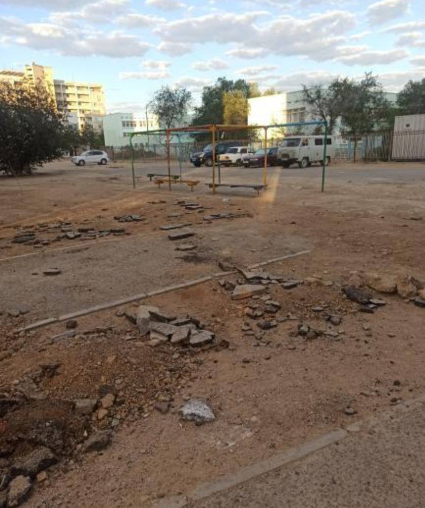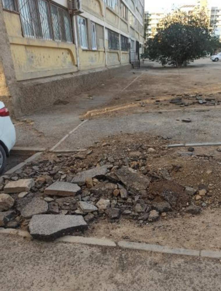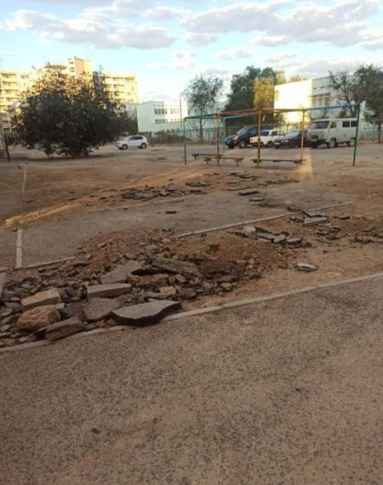 По адресу 13мкр.8дом делали ямочный ремонт асфальта. Старый, срезанный асфальт вывалили и оставили. Писал в акимат, реакции ноль. Пусть компания подрядчик заберёт этот мусор и перед акиматом вывалит.