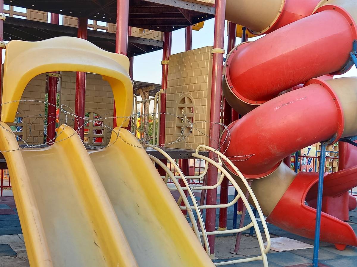 Это наверное единственное место в городе которое НЕ УСПЕЛИ продезинфицировать. Поэтому обматали колючей проволокой.