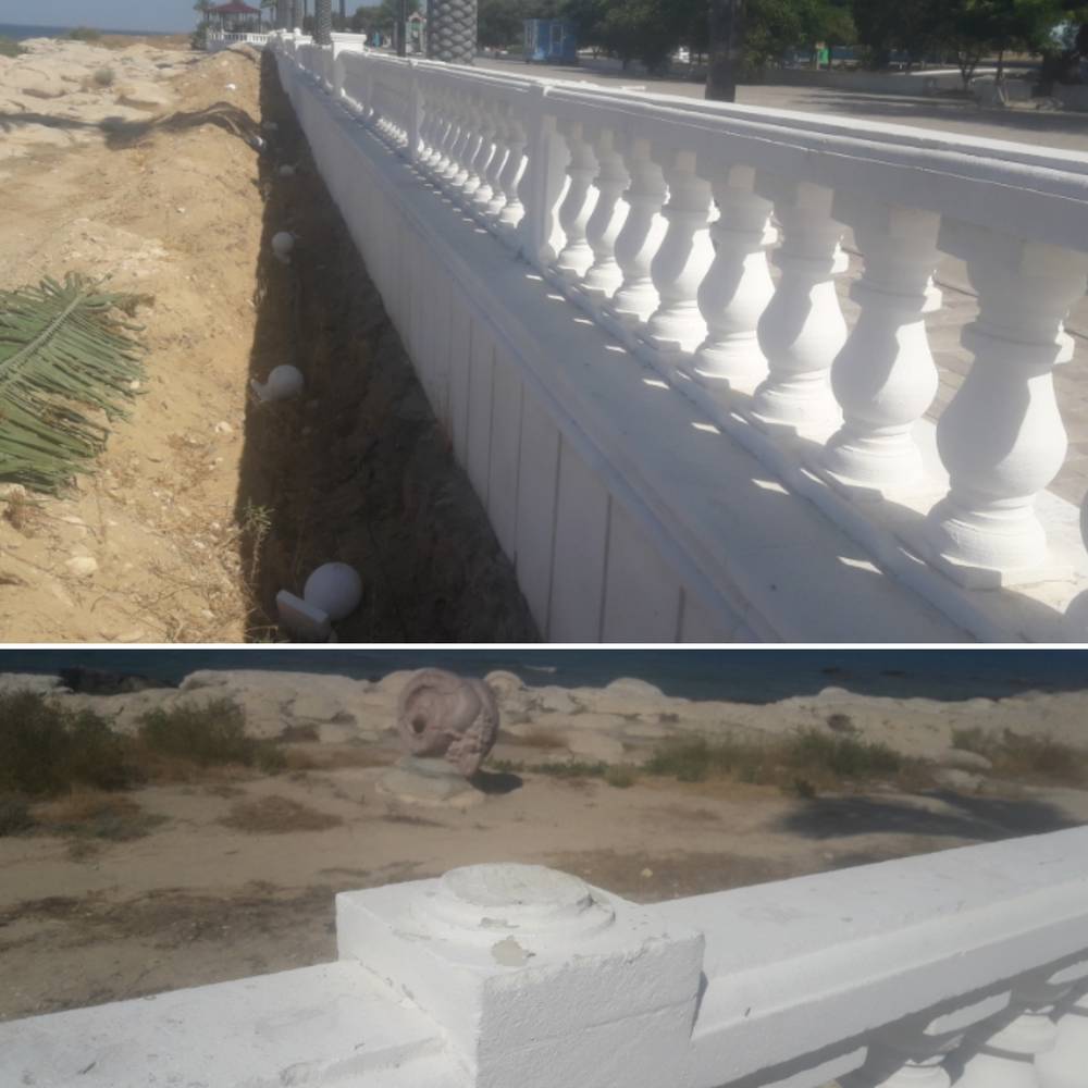 Сколько не обустраивай набережку а вандалы всегда найдутся. К сожелению и тут не обошлось. Сломанная искуственная ветвь пальмы и раскуроченные бетонные шары в яме.