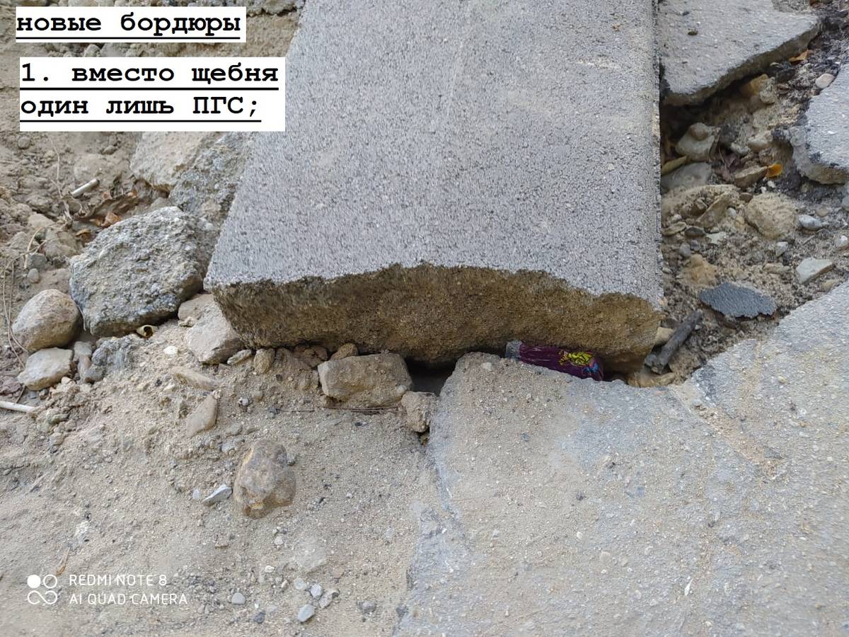 новый бордюр то что на фото БР 100.30.15 (похоже) не соответствует требованием стандарта: ГОСТ 6665-91, поверхность бетона должна быть гладкой, без пор. Класс прочности бетона на сжатие должна быть B30. Тут явно при замесе не соблюдали технологический процесс изготовления бетона.