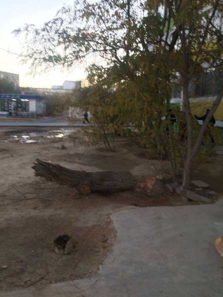 . Вчера за домом 7-15 вместе с сухостоем были также «выдраны» живые деревья. На некоторых деревьях были сухие ветки, которые можно было аккуратно спилить, но само дерево оставить. Деревья сажали, ухаживали, поливали люди десятилетиями, я сама лично носила ведра с водой и поливала, вызывала водовозку всё лето и несколько раз сама оплачивала за водовозку, чтобы сохранить эти деревья, и тут одним взмахом пилы взяли все вырубили!
