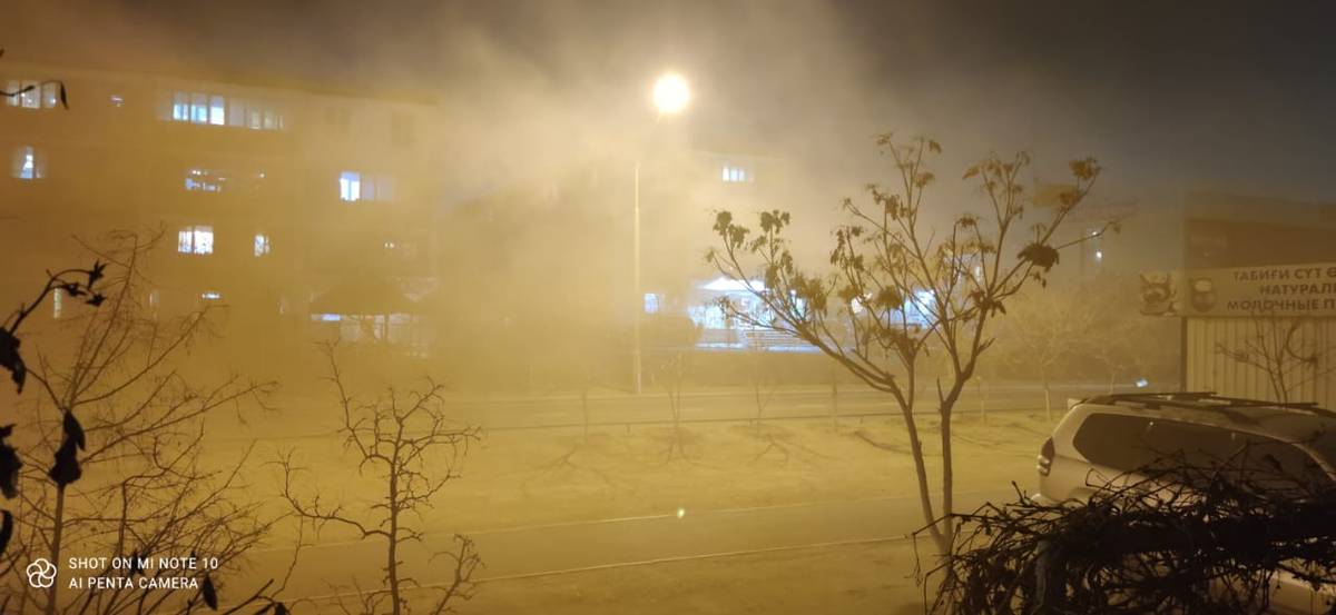 Это туман. А желтый цвет от подсветки уличных фонарей.