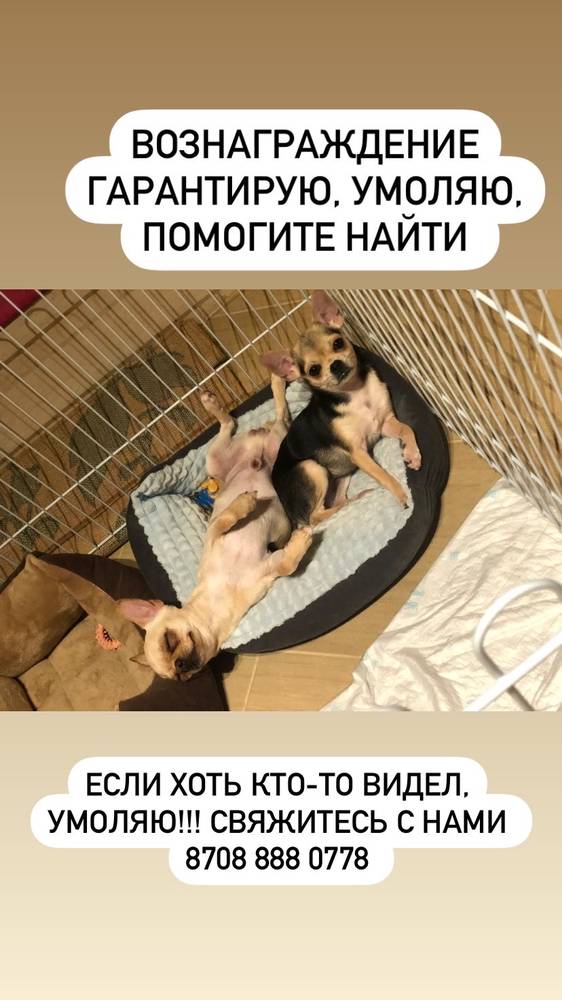 Пропали 2 собаки, 8 апреля в 19.10, выбежали за ворота, и скорее всего были украдены. Частный сектор за базой отдыха Стигл. Просим вернуть за вознаграждение. Если кто-либо владеет какой-то информации, в срочном порядке умоляем связаться с нами +7708 888 0778