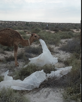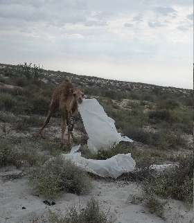 Сейчас решается проблема с кормами для скота в Мангистау, но местные верблюды находят выход из проблемного положения, уплетая целофановую плёнку принесённую ветром со свалок, посчитав плёнку за "деликатесный корм"...
