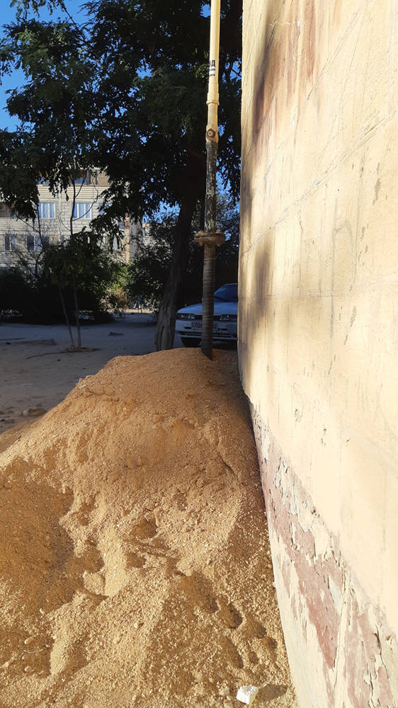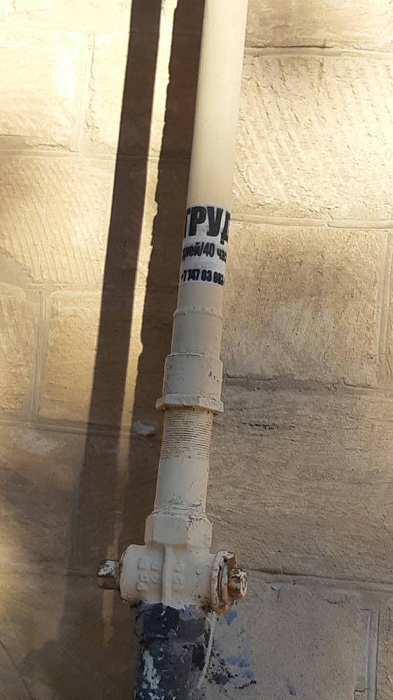 Сегодня, видимо, решив больше не сыпать песок мне под окно, решил просто высыпать его на газовую трубу. Сколько он таким образом пролежит - неизвестно.